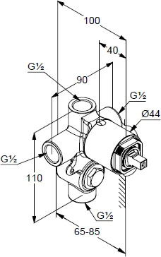 Встроенный девиатор автоматически переключает поток с душа на излив при закрытии воды