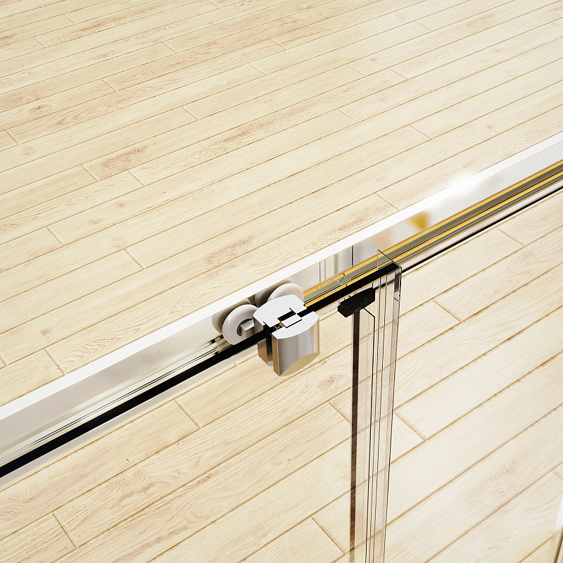 Дверь в нишу шириной 1700 мм., с двумя раздвижными дверьми, на усиленных двойных роликах с нержавеющими подшипниками.