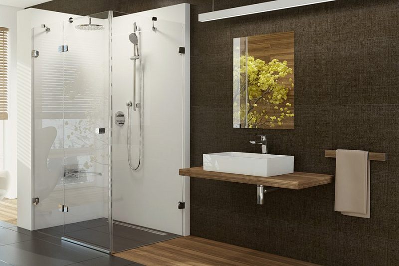 Петли не имеют выступающих частей изнутри душевого угла, что облегчает его обслуживание. Подъемный механизм петель обеспечивает автоматический подъём и опускание двери при открытии и закрытии. Чистый металл и массивное исполнение эргономичной ручки подчеркивают величественное впечатление от всего душевого уголка. Один короткий держатель стекла обеспечивает максимальную стабильность изделия.