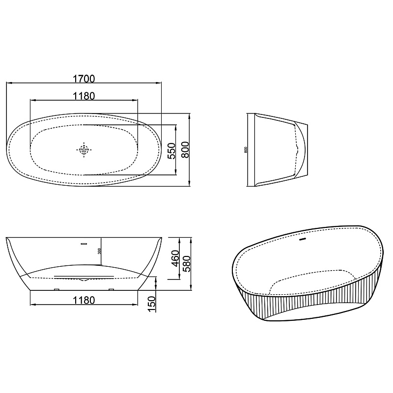 Размеры ванны 1700х800х580 мм идеально подходят для комфортного принятия водных процедур, обеспечивая достаточно пространства для расслабления. В комплект входит сифон, который обеспечивает надежный слив воды, а также металлическая рама — прочный каркас, гарантирующий устойчивость и долговечность всей конструкции.