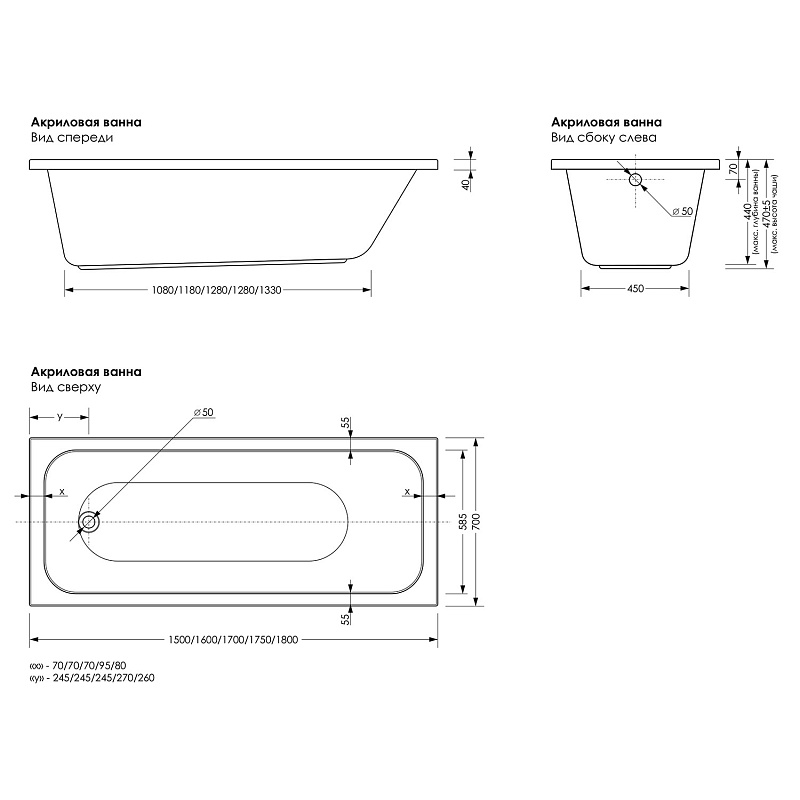 Толщина ванны, мм