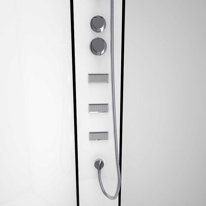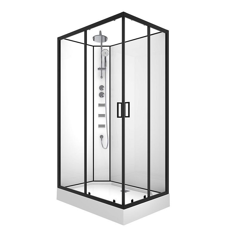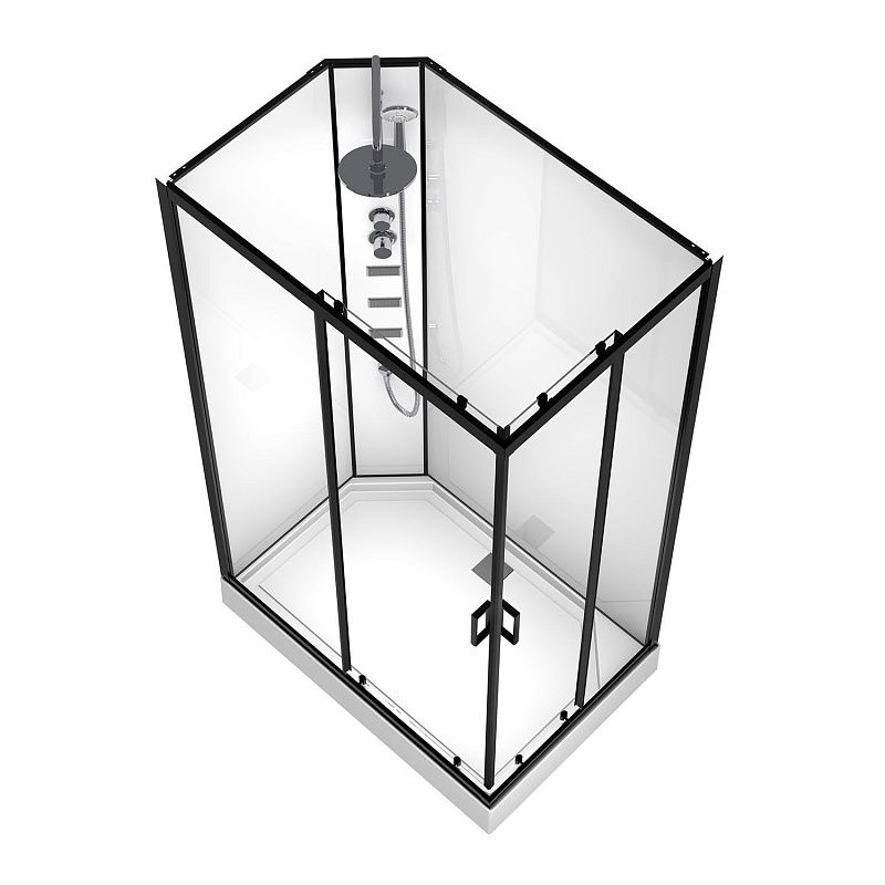 CS-21813 Душевая кабина 120x80x(190+15)см с низким поддоном 15см, прозрачное закаленное стекло 5 мм, задние стеклянные стенки БЕЛЫЕ, профиль черный-мат, верхний душ, хромированный ручной душ + шланг для душа + хромированный держатель, кронштейн для душа. (3 места)