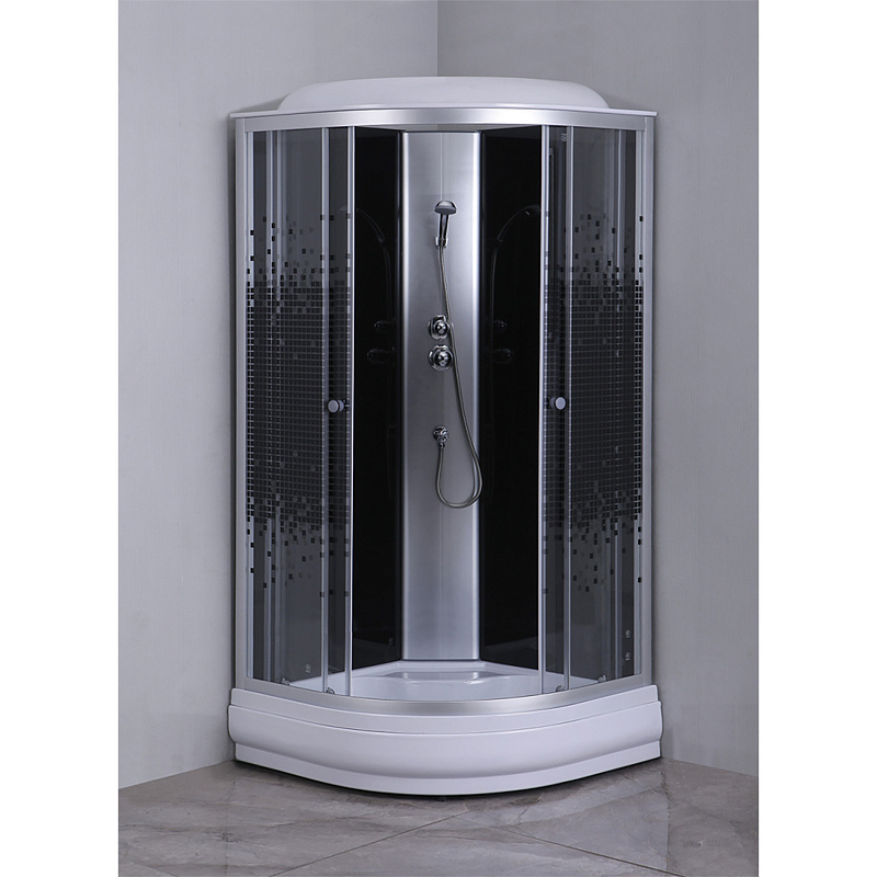 Душевая кабина Loranto 90х90х215 поддон 13см, черный мозаичный узор, прозрачное стекло 4мм, профиль хром матовый (CS-6690-13K 90)