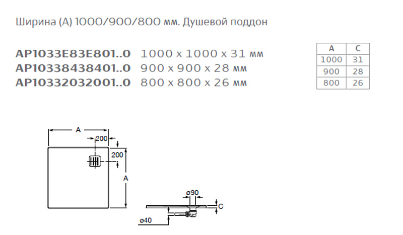 Душевой поддон, выполненный из искусственного камня, прочного и долговечного материала.