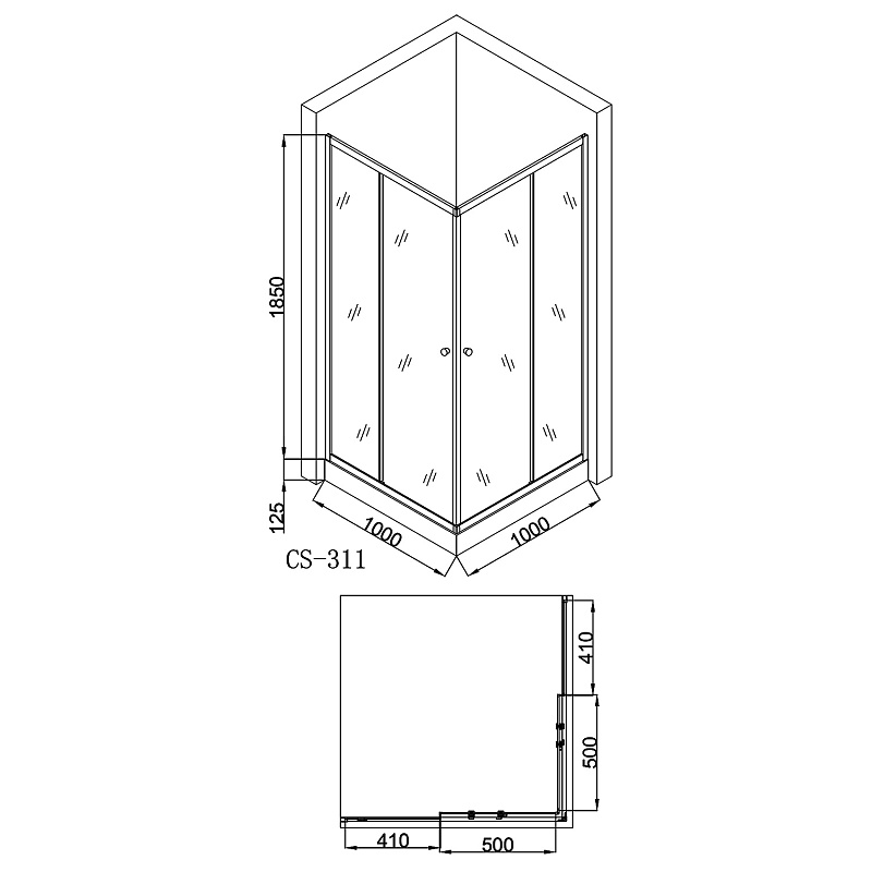 Размеры: 1000х1000х1975 мм (ширина х глубина х высота)