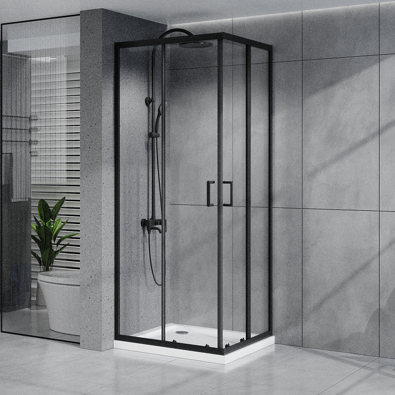 Квадратный душевой уголок, с двумя раздвижными дверьми,