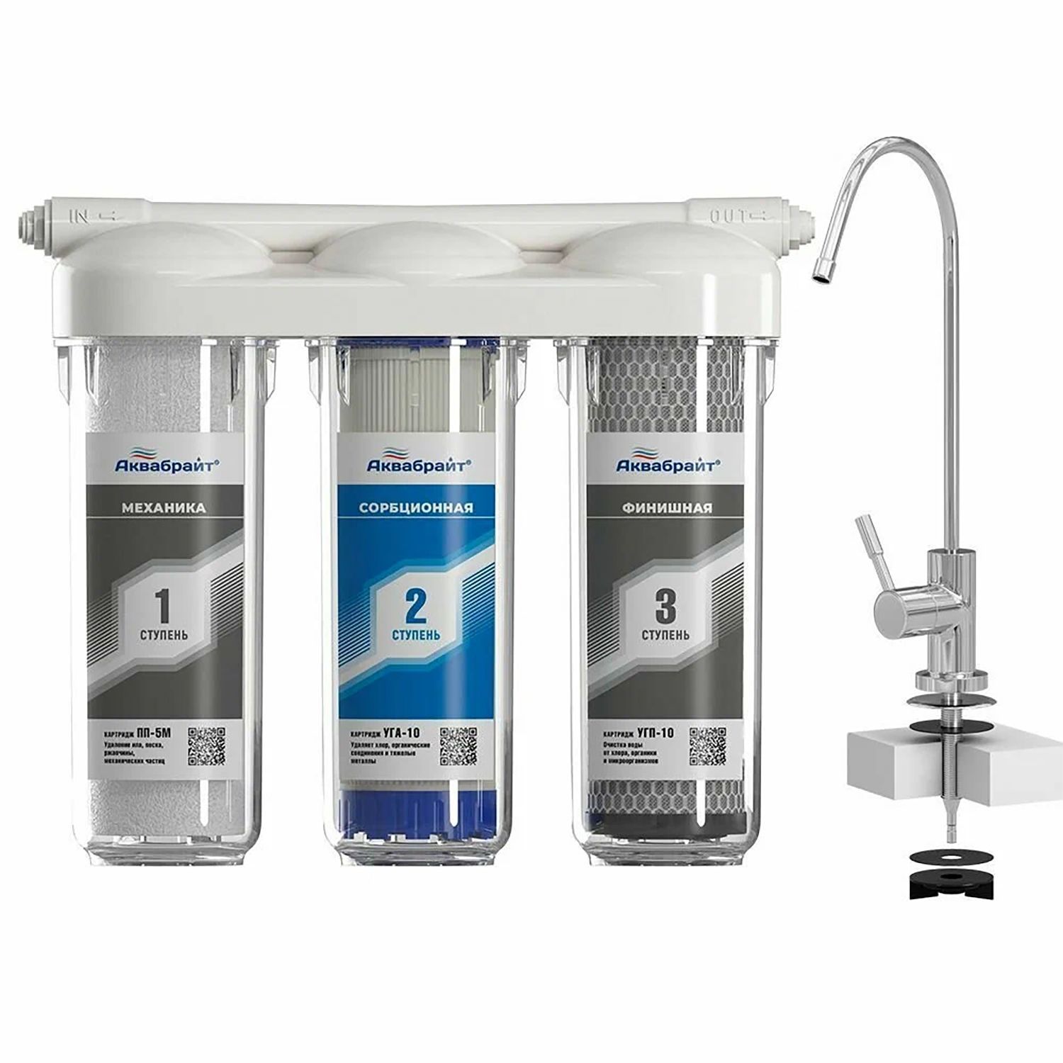 АБФ-ТРИА - СТАНДАРТ, ТРЕХСТУПЕНЧАТАЯ система очистки воды под КУХОННУЮ МОЙКУ с отдельным краном. ПРЕИМУЩЕСТВА системы: Позрачные корпуса фильтров. МОНОЛИТНЫЙ КОЛЛЕКТОР (Крышка). Типоразмер картриджей SLIMLINE 10
