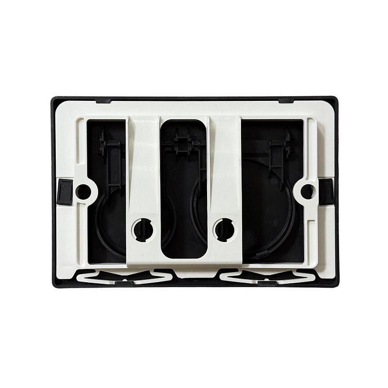 Компактная панель управления сливом (размеры: 24х16 см, глубина 1 см) идеально дополнит инсталляцию Azario. Модель выполнена в классическом сочетании: прочная рамка из ударопрочного пластика и кнопки из нержавеющей стали. Такое решение обеспечивает долговечность, устойчивость к коррозии и современный «металлический» акцент в ванной.