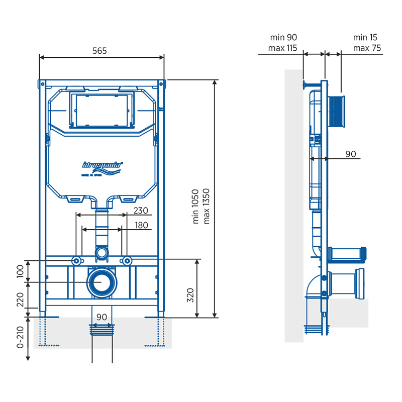 Встроенный бачок с механизмом двойного смыва объемом 3/6 л. Технические характеристики