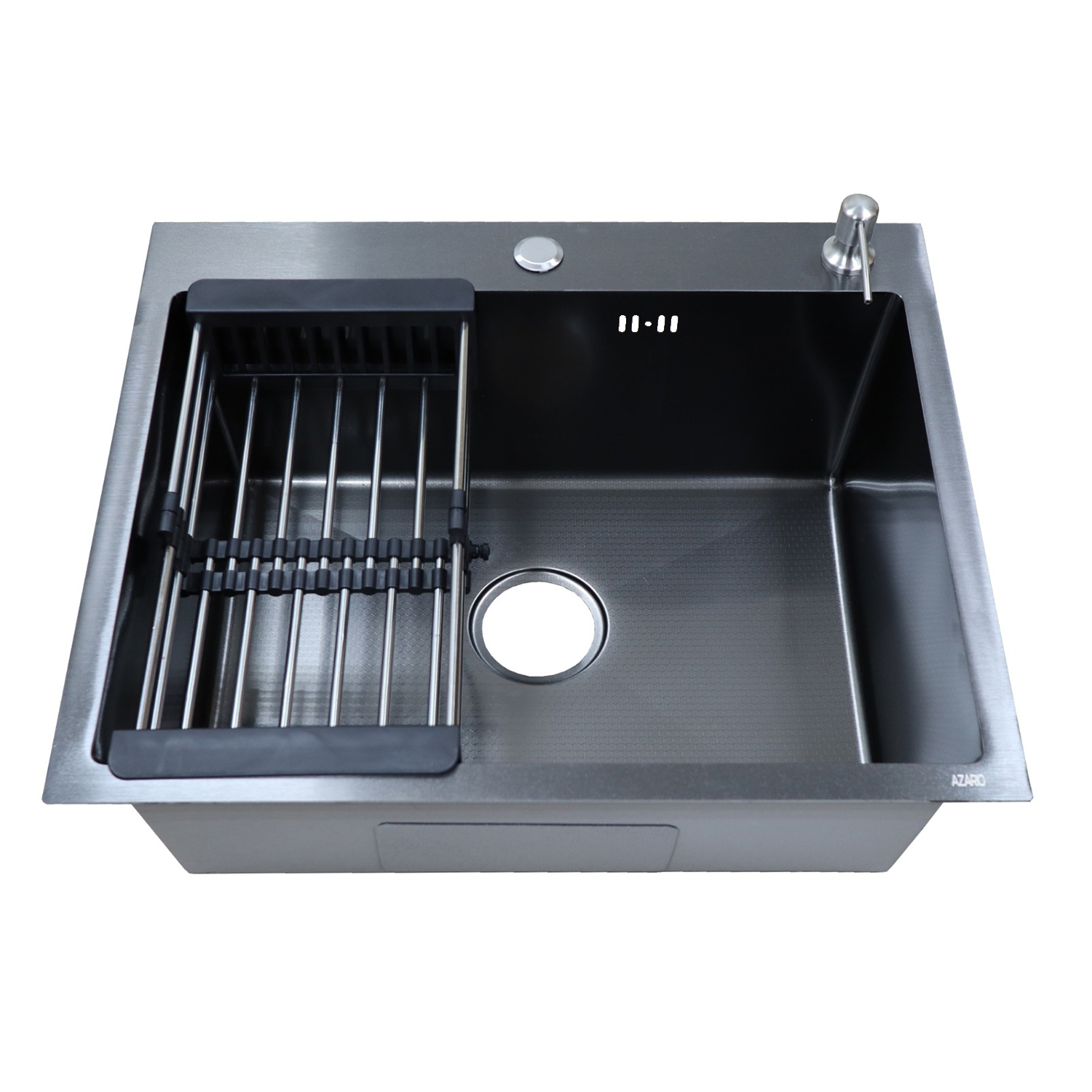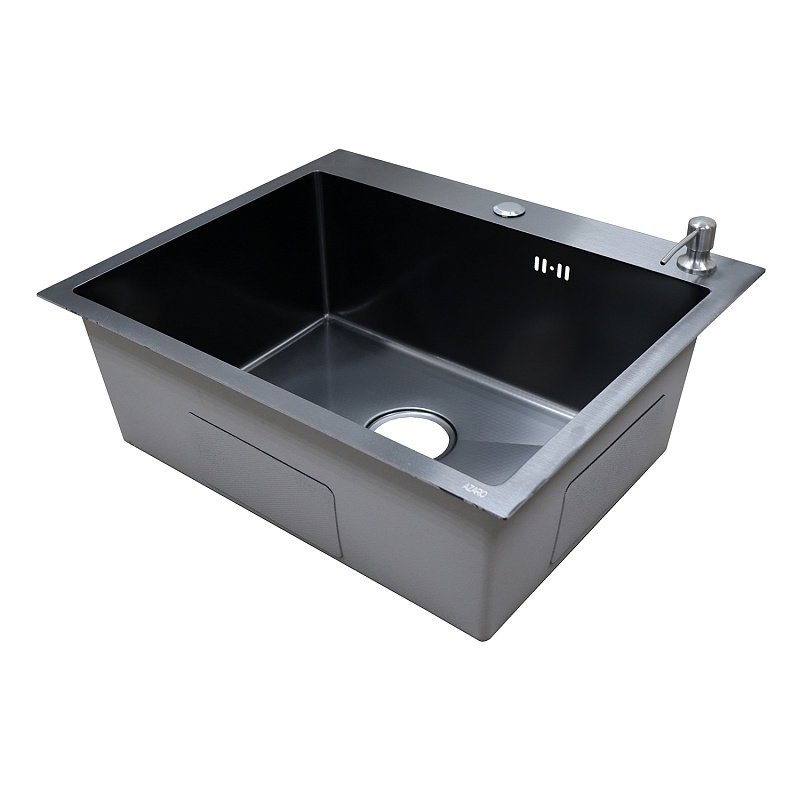Кухонная мойка AZARIO NICOLE 500х500х220 нержавеющая сталь, в комплекте сифон, диспенсер, коландер, черная соты (AZB5050H)