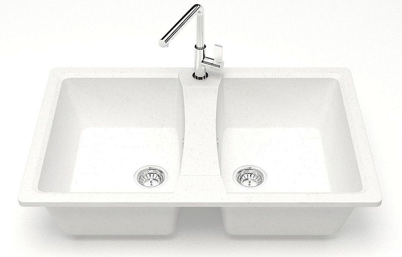 Кухонная мойка изготовлена из современных экологически чистых материалов, природного молотого кварца, мрамора или гранита с добавлением специальных пигментов и красителей.