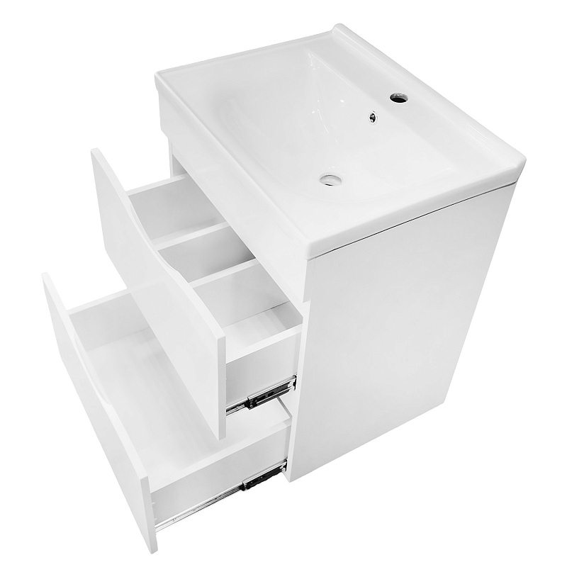 —Комплект Тумба Loranto Santorini 60 610х460х810 напольная, с раковиной MONTE Neo 60, Белый Глянец (CS00105567)
