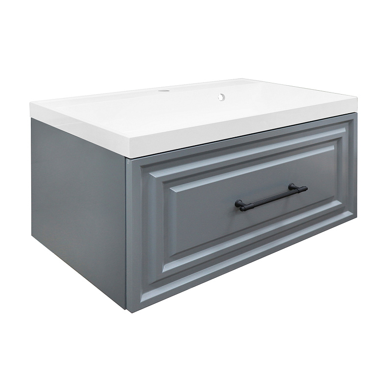 Тумба, ручки, полка, набор для монтажа, раковина из литьевого мрамора