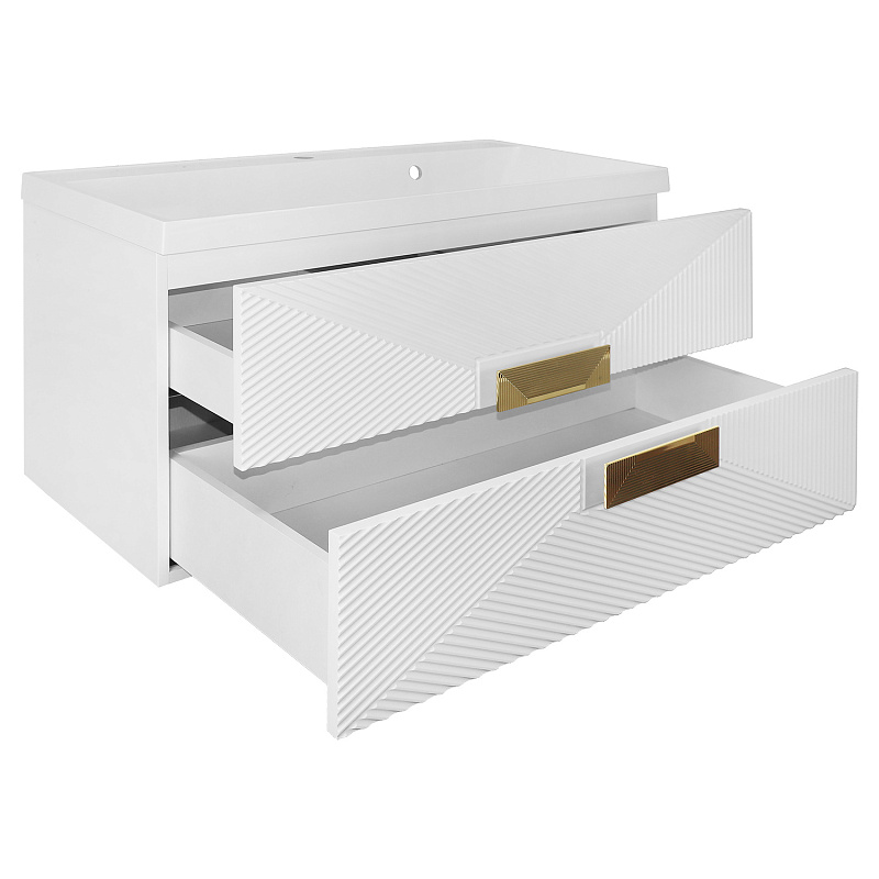 Два выдвижных ящика: Два вместительных выдвижных ящика с плавным закрыванием (доводчиками) позволяют аккуратно организовать хранение полотенец, косметики, средств гигиены и других предметов.