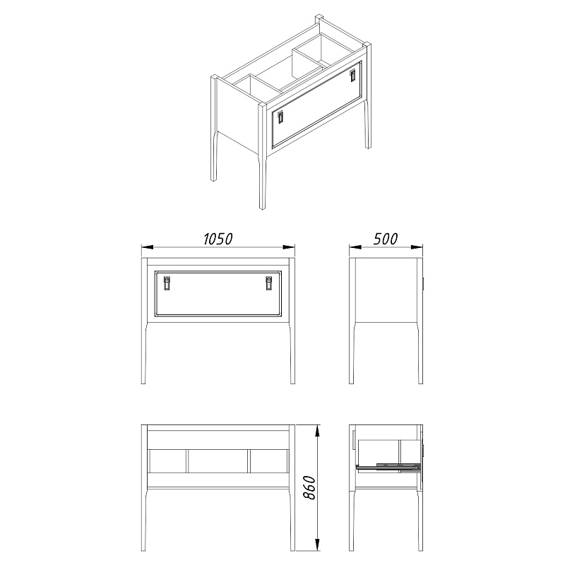 Тумба, ручки, полка, набор для монтажа, раковина керамическая