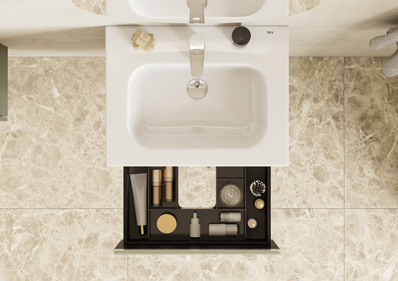 —Комплект: Тумба под раковину Roca Ona Olive 600 подвесная, 2 ящика + раковина ONA 60х46, оливковый матовый (Z.RU93.1.045.5)