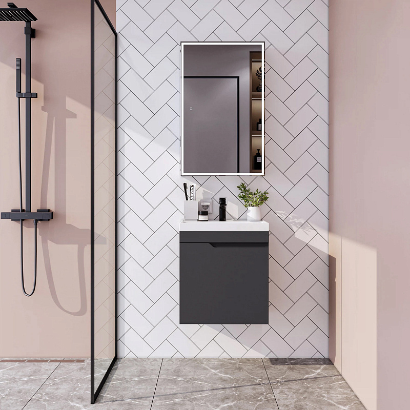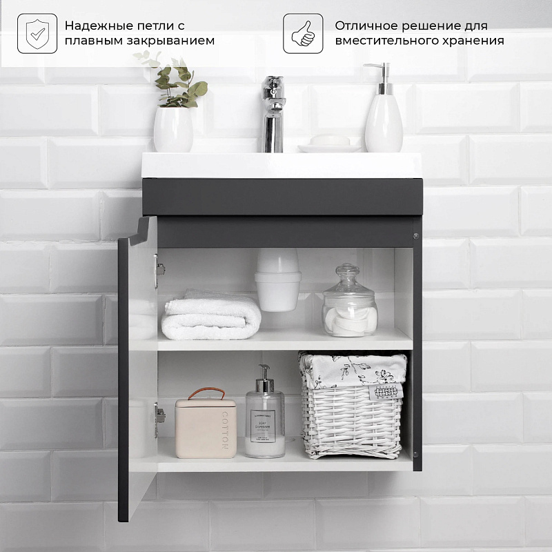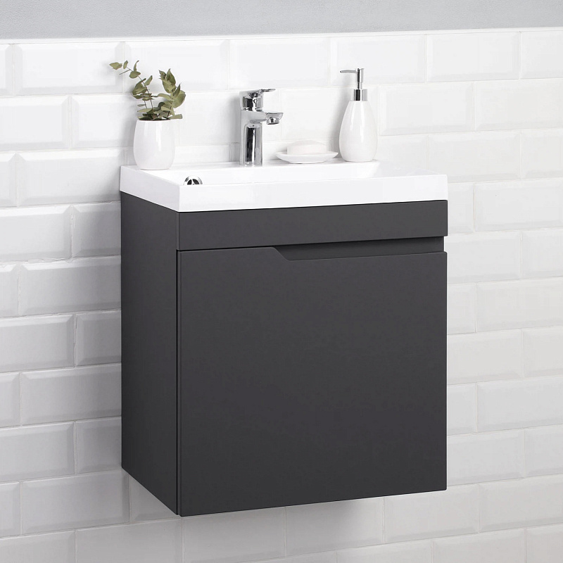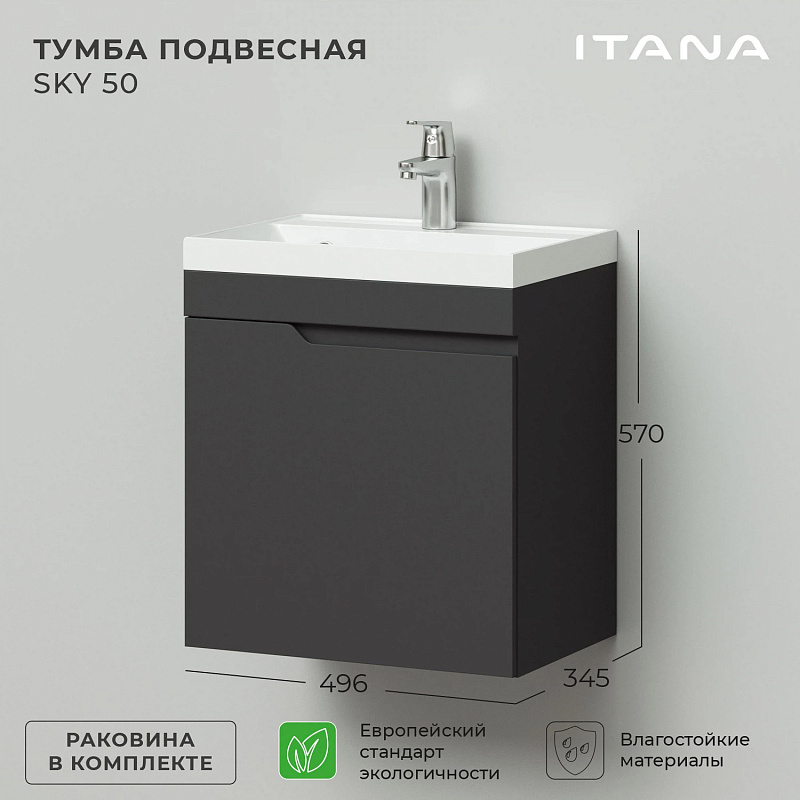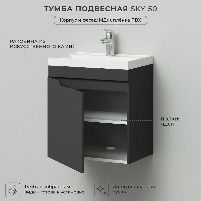 Подвесная тумба из коллекции Sky -это сочетание современной стилистики и богатого функционала. Подвесной способ установки дает возможность не только визуально увеличить пространство, но и обеспечивает быстрый и удобный доступ для уборки. Тумба покрыта ПВХ-пленкой графитового цвета, что обеспечивает изделию привлекательный внешний вид, а также износостойкость и долговечность. Качественные направляющие скрытого монтажа обеспечивают плавное открывание и закрывание ящичков. Ручки интегрированы в фасад, что исключает возможность случайного удара о фурнитуру.