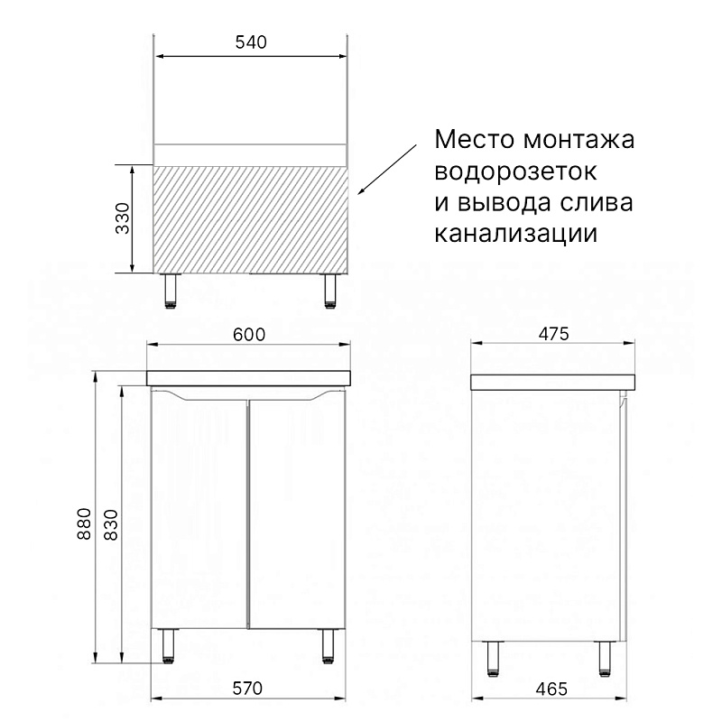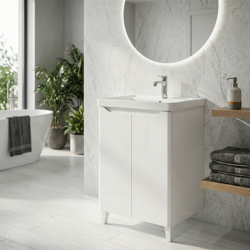 Комплект Аzario Тумба LOTOS 60 Н 600х475х880 напольная, с раковиной Monte 60, белый глянцевый (CS00105740)