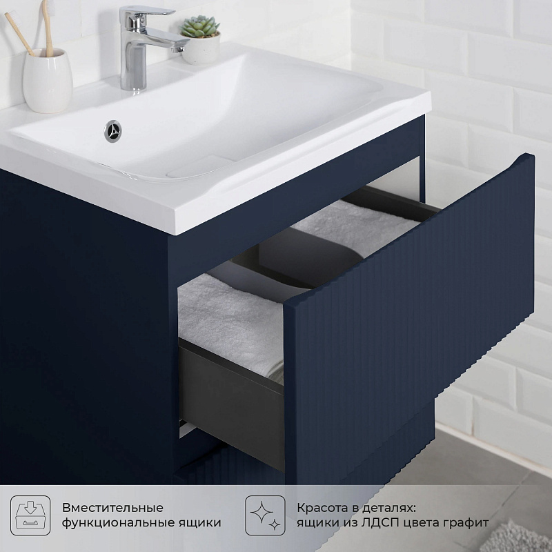 Коллекция Kate - воплотила в себе тренд на фактурные фасады. Идеальный "рубчик" - простое и стильное дизайнерское решение для декорирования фасадов - эта мебель бесспорно станет украшением современной ванной комнаты. Коллекция выполнена из МДФ и покрыта ПВХ пленкой, что делает её устойчивой к влаге, а значит долговечной. Удобные фрезерованные ручки, качественная фурнитура с доводчиками, вместительность - мы продумали все, чтобы мебель была не просто красивой, но еще и функциональной, приятной в использовании.