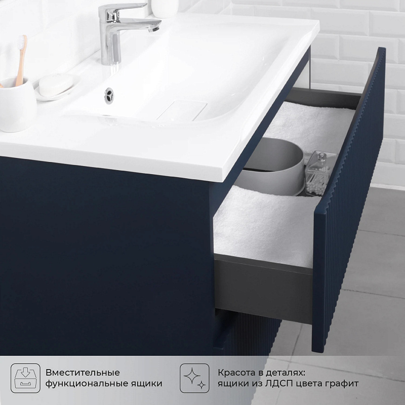 Коллекция Kate - воплотила в себе тренд на фактурные фасады. Идеальный "рубчик" - простое и стильное дизайнерское решение для декорирования фасадов - эта мебель бесспорно станет украшением современной ванной комнаты. Коллекция выполнена из МДФ и покрыта ПВХ пленкой, что делает её устойчивой к влаге, а значит долговечной. Удобные фрезерованные ручки, качественная фурнитура с доводчиками, вместительность - мы продумали все, чтобы мебель была не просто красивой, но еще и функциональной, приятной в использовании.