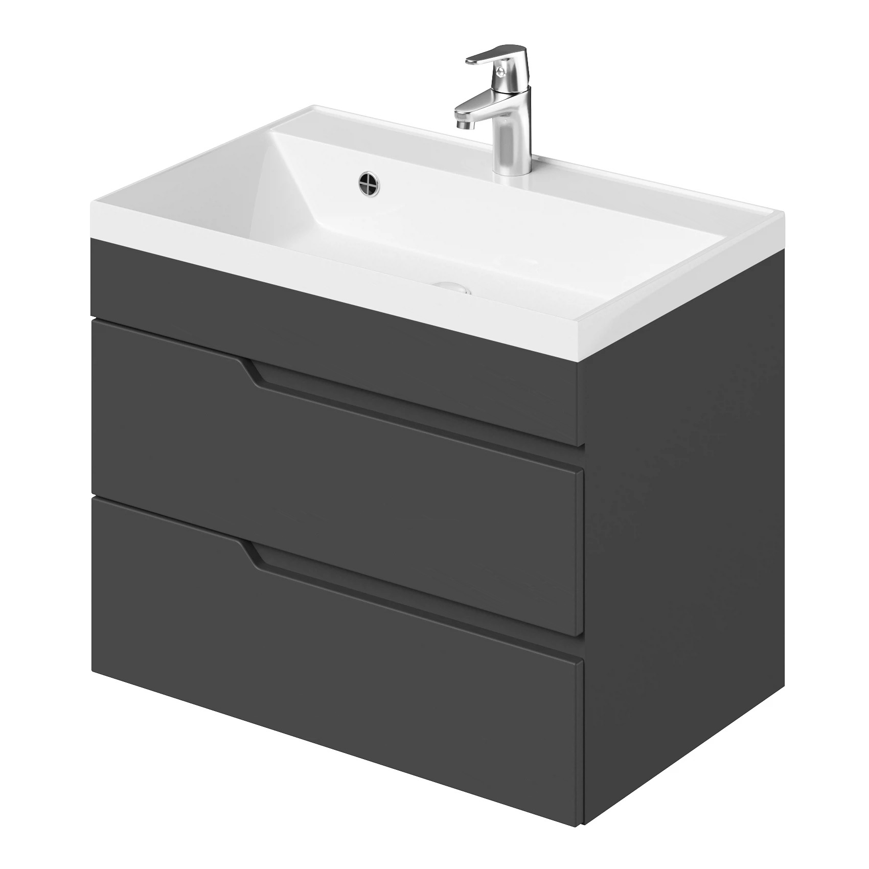 Подвесная тумба с раковиной из коллекции Sky -это сочетание современной стилистики и богатого функционала. Подвесной способ установки дает возможность не только визуально увеличить пространство, но и обеспечивает быстрый и удобный доступ для уборки. Тумба покрыта ПВХ-пленкой с высокой степенью глянца, что обеспечивает изделию привлекательный внешний вид, а также износостойкость и долговечность. Раковина выполнена из искусственного камня. Качественные направляющие скрытого монтажа обеспечивают плавное открывание и закрывание ящичков. Ручки интегрированы в фасад , что исключает возможность случайного удара о фурнитуру.