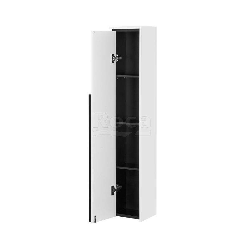 Компактная и функциональная шкаф-колонна Aneto является прекрасным дополнением к комплекту Aneto. Изящная черная матовая ручка удобна в использовании и подчеркивает графичность дизайна коллекции. За фасадом находится вместительное отделение с тремя регулируемыми по высоте полочками из влагостойкой ламинированной плиты, на которых можно разместить все необходимые принадлежности. Петли снабжены доводчиками для комфортного использования.