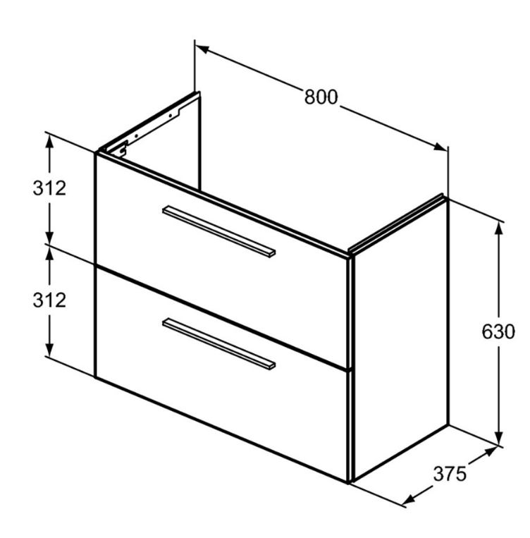 i.Life S Тумба для раковины 80 см, для подвесного монтажа, с 2-мя ящиками, система плавного закрытия, ручки в комплект не включены (заказываются дополнительно), с крепежом.