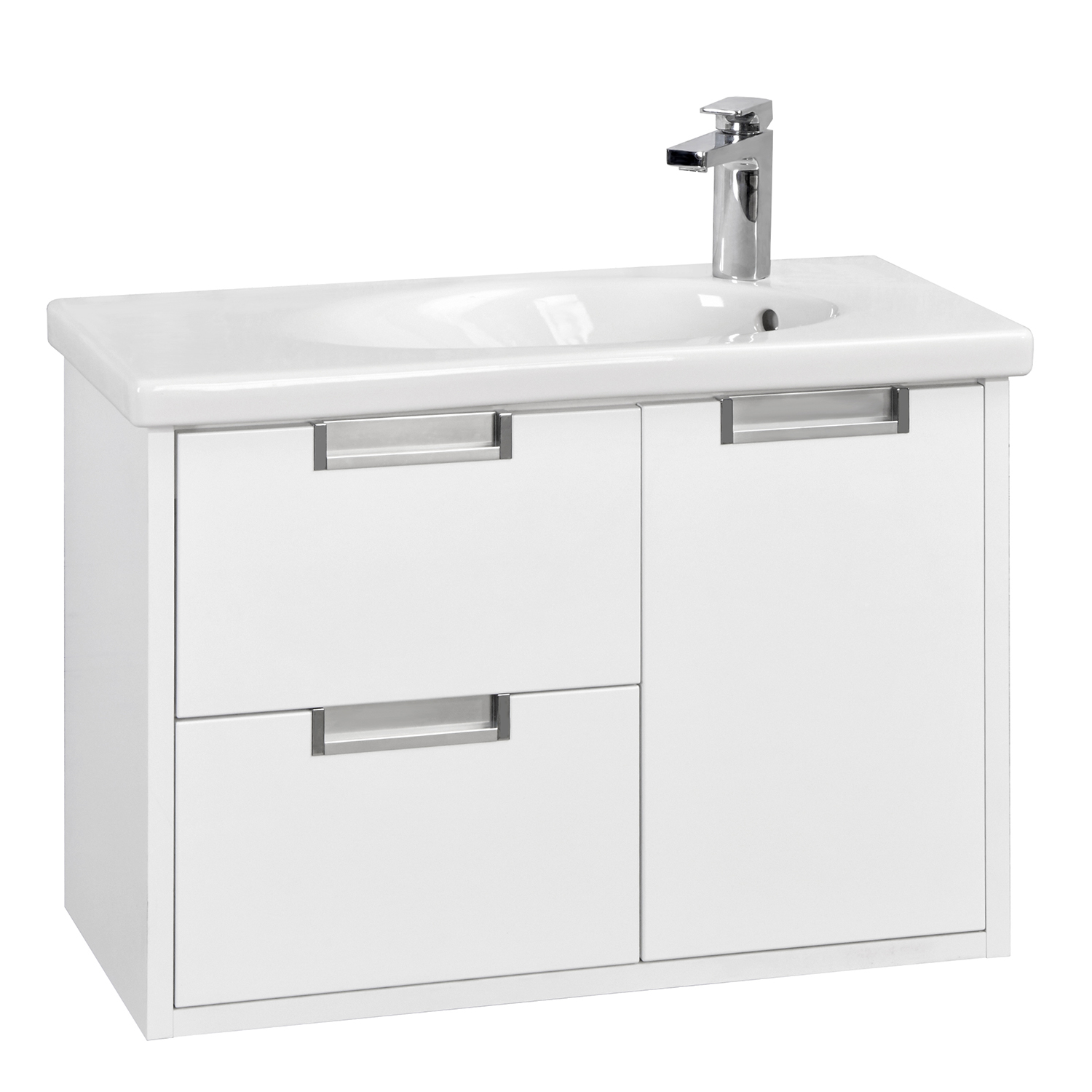 Тумба для раковины Etna в современном стиле от испанского бренда Roca, выполненная из влагостойкой высококачественной ЛДСП и МДФ с ящиками и распашной дверцей с доводчиками.