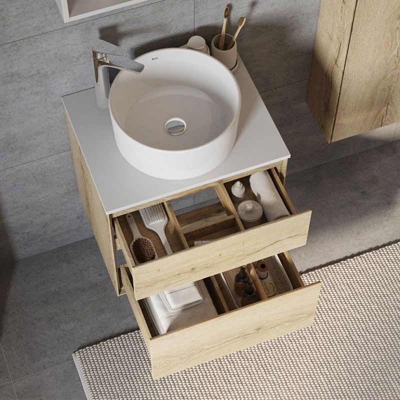 Коллекция мебели Либерти предлагает функциональные и эстетичные решения для ванных комнат. Тумбы с 2 ящиками выполнены в едином цветовом решении, что придает им гармоничный и стильный вид. Корпус, фасады и внутренняя организация тумб изготовлены из влагостойкой ЛДСП, имитирующей текстуру дерева. Боковины тумб обработаны по особой технологии, создающей эффект тонких линий и в то же время сохраняющей надежность конструкции. Ящики открывваются одним нажатием, так как оснащены механизмом Push-to-Open, гарантирующим плавное открывание и закрывание. В тумбах с ящиками размером от 70 см предусмотрена регулируемая система хранения, которая позволяет организовать пространство внутри ящика максимально эффективно. Это обеспечивает комфортное хранение вещей в ванной комнате. Тумбы Либерти с 2 ящиками могут быть дополнены мебельной раковиной “Элина”, которая отличается вместительной чашей и изящными бортами. Также они совместимы с накладными раковинами Roca Mila, Santek Одри и Aquaton Лола.