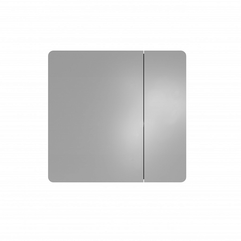 Зеркальный шкаф выполнен из влагостойкой ЛДСП: корпус выполнен из ЛВДСП в цвете кашемир, а фасад из ЛВДСП, покрытый зеркальным полотном. Фасад зеркального шкафа имеет закругленные углы, что повторяет стилистику Ар-деко и мягкие плавные закругления на раковине. Внутреннее пространство разделено на две половины, в каждой из которой есть регулируемые полочки из затемненного стекла для хранения. Эти полочки также установлены на специальных держателях, что предотвращает опрокидывание предметов. Открывание за фасад позволяет быстро добраться до необходимых вещей, а благодаря петлям с доводчиками обеспечивается плавное закрывание, что гарантирует бесшумность и комфорт использования мебели.