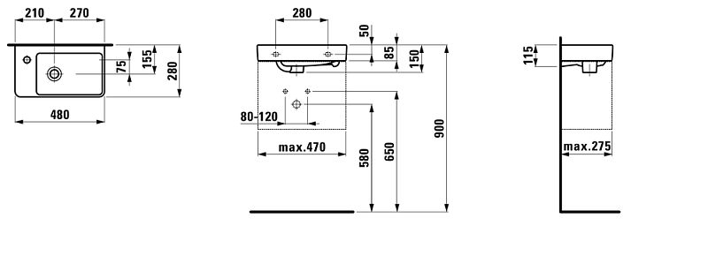 —Мини-раковина Laufen PRO S 480x280mm, белая (8.1595.5.000.104.1)
