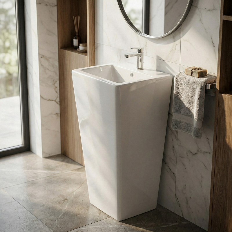 Раковина напольная AZARIO FRETTA SQUARE 440х380х835 — стильное и функциональное решение для ванной комнаты. Изготовлена из высококачественного санфаянса с белым глянцевым покрытием, что обеспечивает долговечность и легкость в уходе. Прямоугольная форма и компактные размеры (440х380х835 мм) позволяют гармонично вписать раковину в интерьер любого стиля. Отдельностоящая конструкция облегчает монтаж и придает ванной комнате современный и аккуратный вид. Идеальный выбор для тех, кто ценит качество и элегантность в деталях.