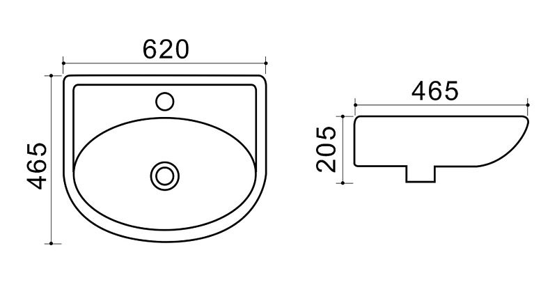 Подвесная раковина Azario TEO-60 (с креплениями и отверстиями для креплений)