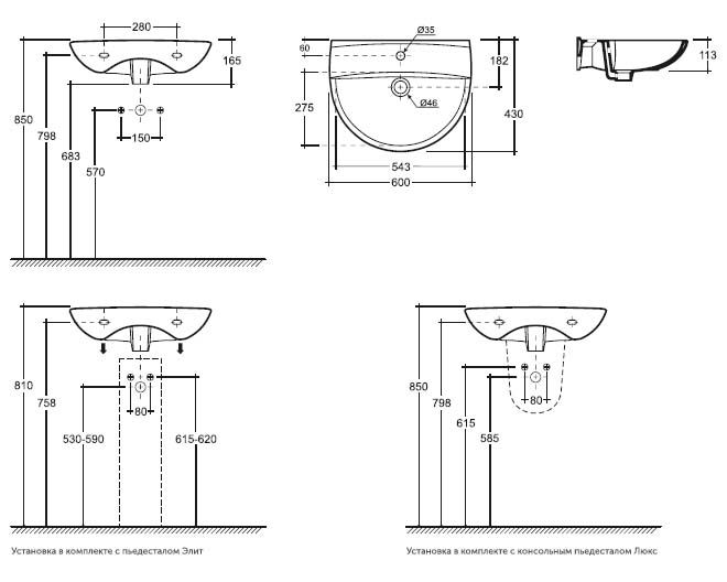 Навесные и подвесные раковины