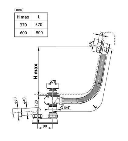 Сточный комплект с управлением тросиком – длина 570 mm
