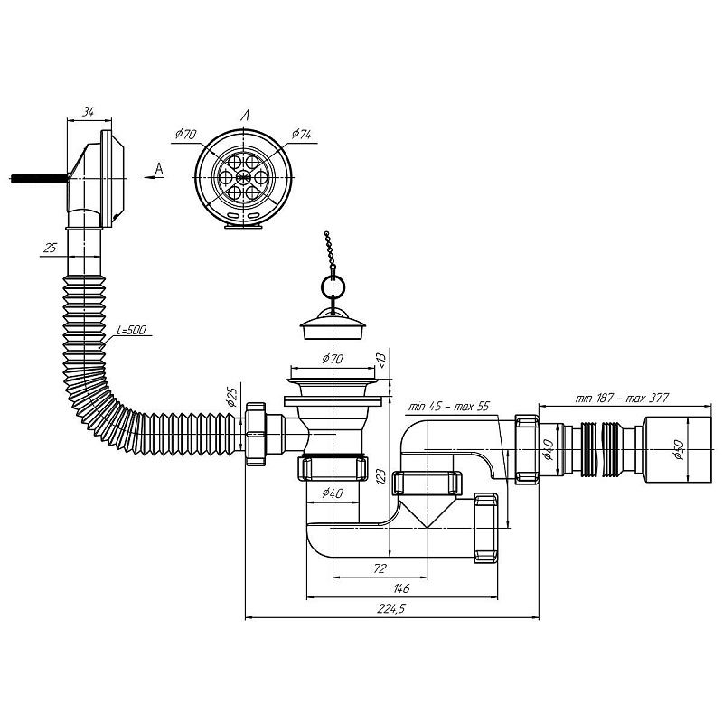 • Тип сифона: регулируемый
