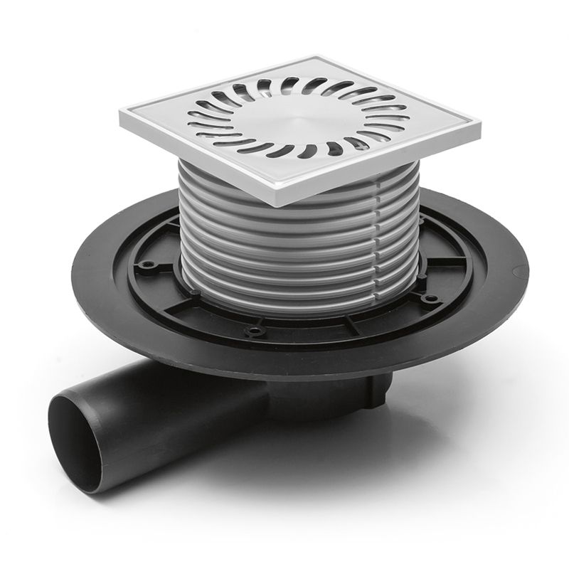 —Душевой трап Azario 125х125 Dn 50 горизонтальный выпуск, с решеткой из нержавеющей стали, гидрозатвором (AZ-381 A)