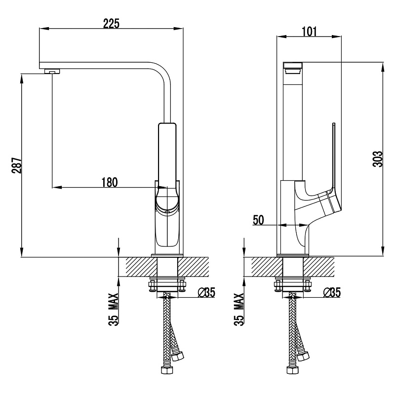 —Смеситель для кухонной мойки Azario VISE керамический картридж, хром (AZ-VQQ568330C)