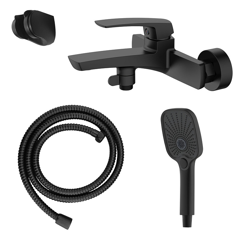 Смеситель для ванны Azario Conda с ручным душем, керамический картридж, шланг 150 см, черный матовый (AZ-K3011B)