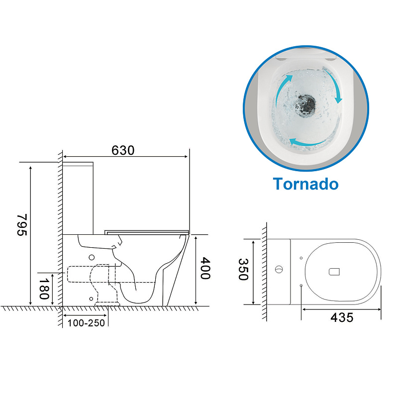 Максимальная гигиеничность: Благодаря безободковой конструкции и системе слива "Торнадо".