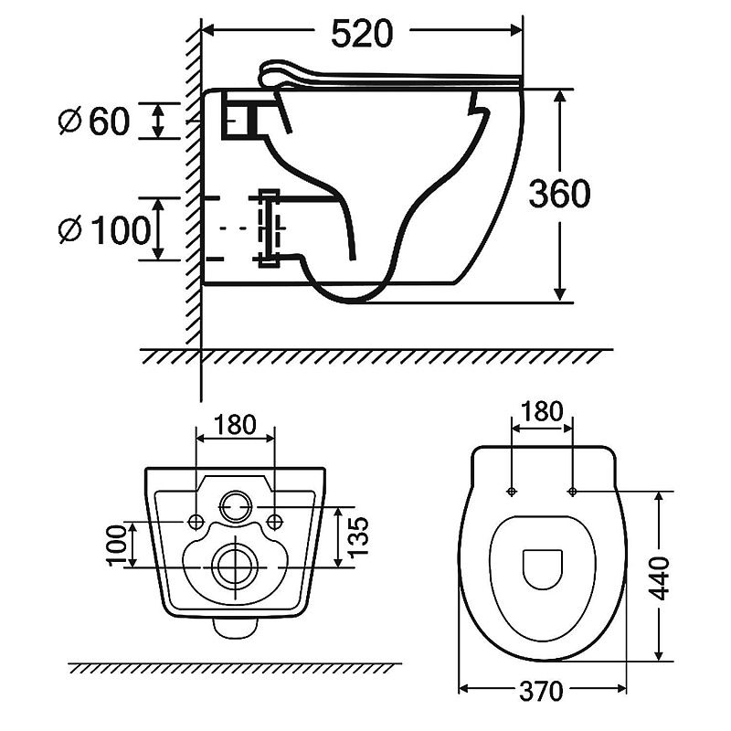 —Унитаз подвесной Azario Керас Вайт 370х520х360 безободковый, с быстросъемным сиденьем микролифт, белый глянцевый (AZ-99046W)