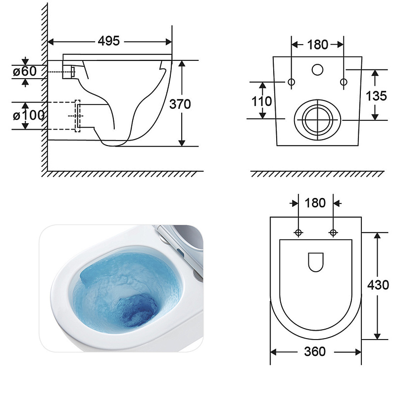 • Габариты 495x360x370 мм позволяют установить унитаз даже в небольших ванных комнатах, экономя пространство.