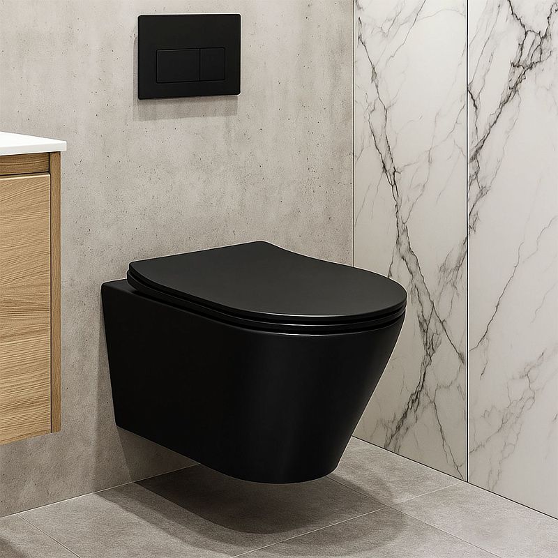 Стильный дизайн: Черный матовый цвет и лаконичные формы придают унитазу современный и элегантный вид.