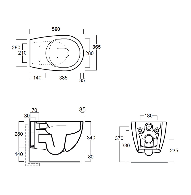 —Унитаз подвесной Simas Vignoni "Rimless" 365х560х340 безободковый, с креплением F85, черный матовый (VI18nero matt)