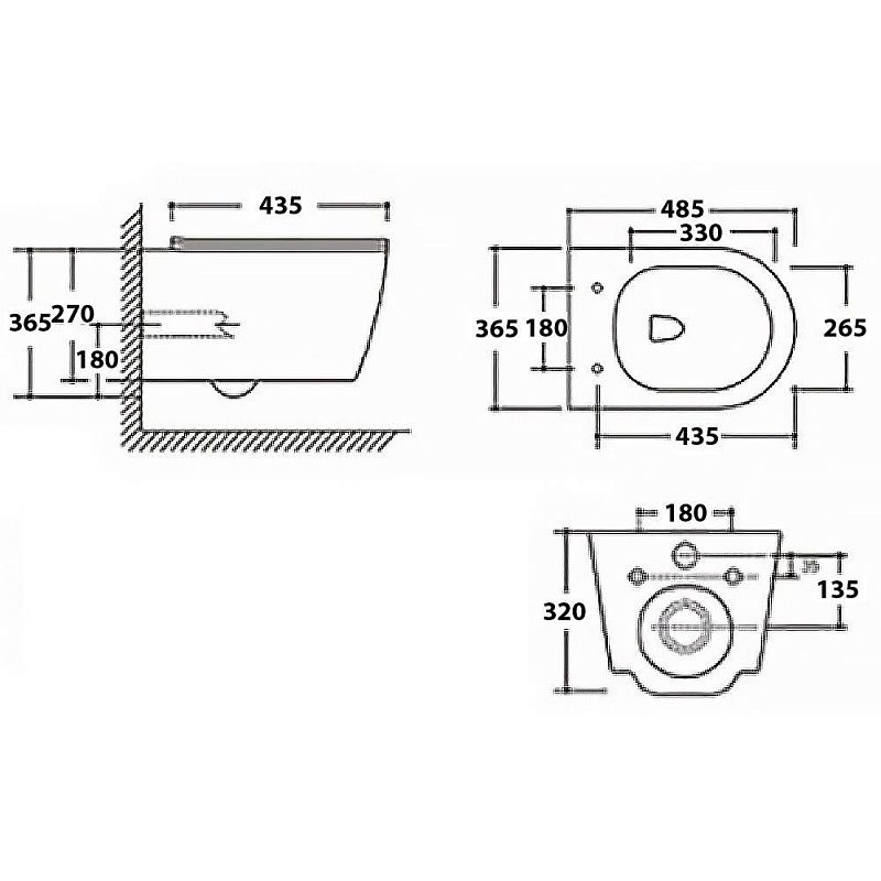 • Габариты унитаза (365х485х365 мм) делают его идеальным выбором даже для небольших ванных комнат, не жертвуя при этом пространством и комфортом.
