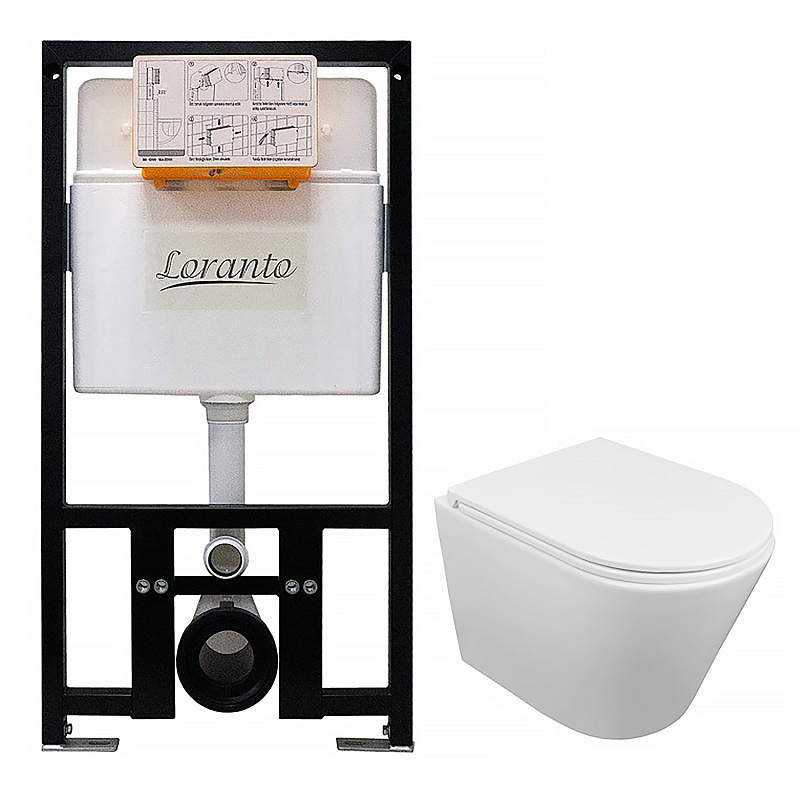 —Сет: Инсталляция LORANTO Prestige + подвесной унитаз Azario Teramo 515х355х365 безободковый, система смыва "Скрытое торнадо" в комплекте с быстросъемным сидением микролифт (БЕЗ КНОПКИ) (4551+AZ-0053-UQ3)