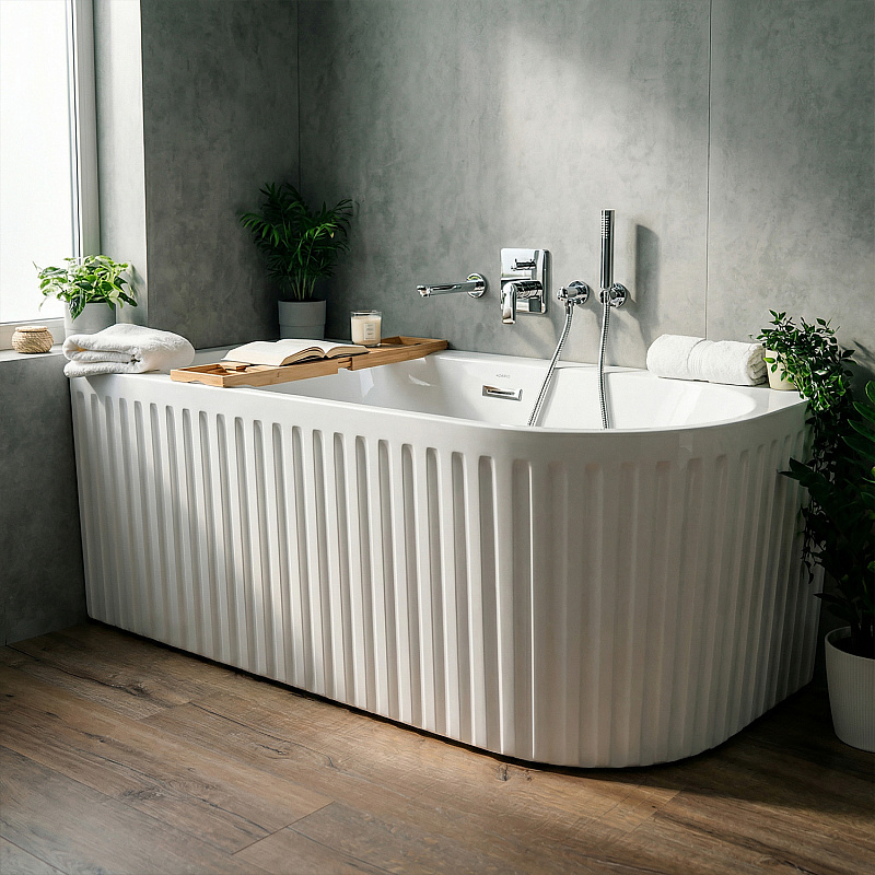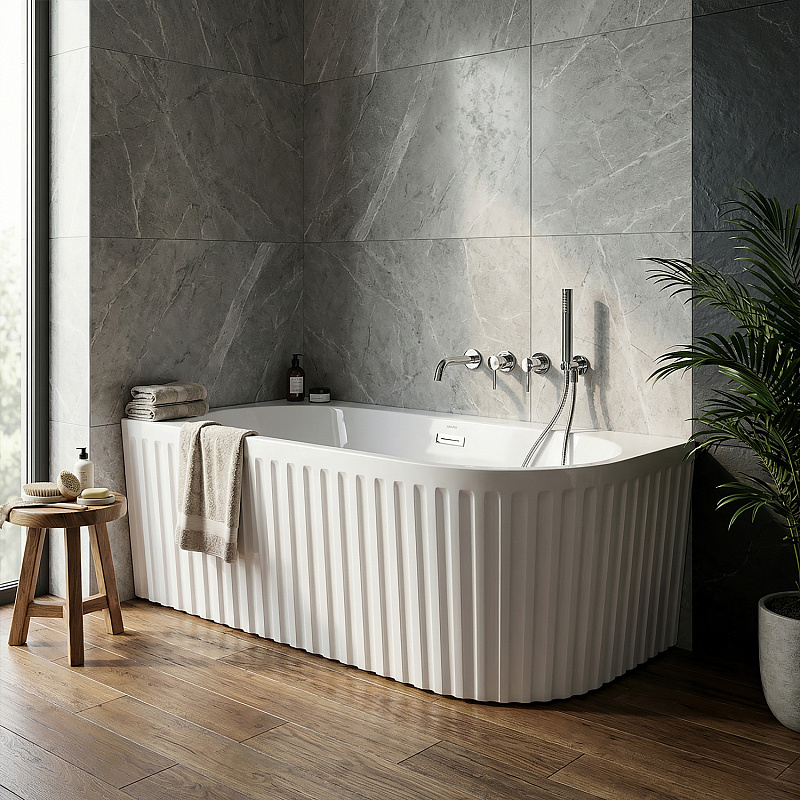 Рифленая внешняя поверхность: Уникальная рифленая текстура внешней поверхности не только придает ванне изысканный и современный вид, но и обеспечивает дополнительное сцепление, предотвращая скольжение и повышая безопасность.