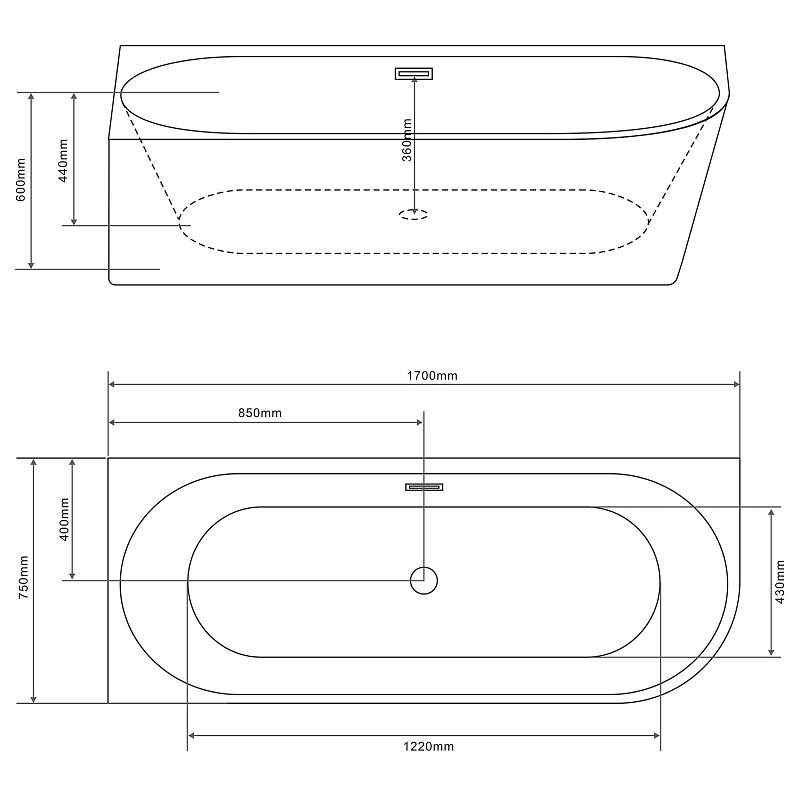 • Простор и комфорт: Размеры 1700х750х600 мм обеспечивают достаточно места для полного погружения и расслабления. Глубина 600 мм позволяет насладиться полноценной ванной процедурой.