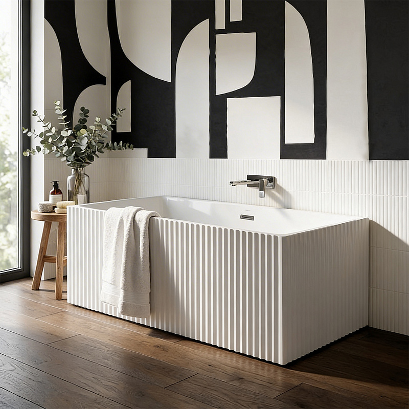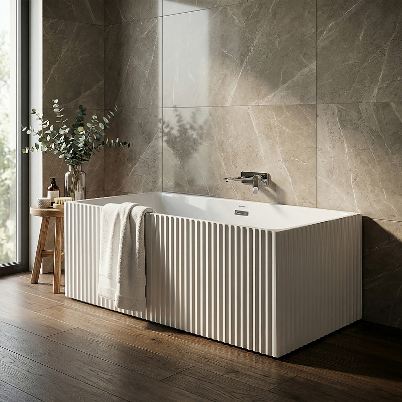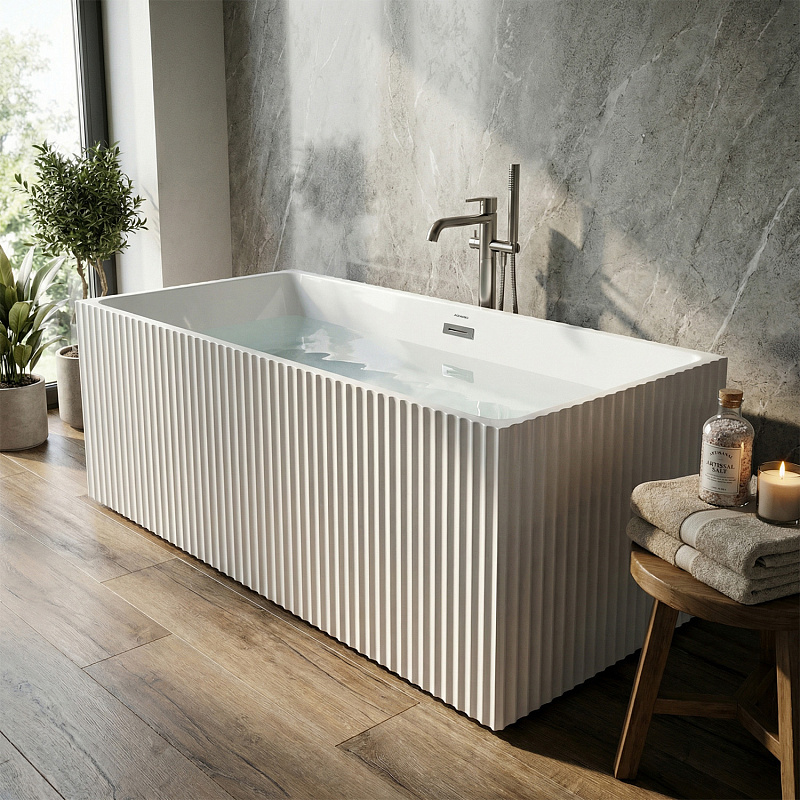 Рифленая поверхность: Уникальная рифленая текстура внешней поверхности ванны Azario KATRINA не только придает ей неповторимый визуальный шарм, но и добавляет тактильную изысканность. Это дизайнерское решение подчеркивает индивидуальность вашего пространства и создает ощущение роскоши.