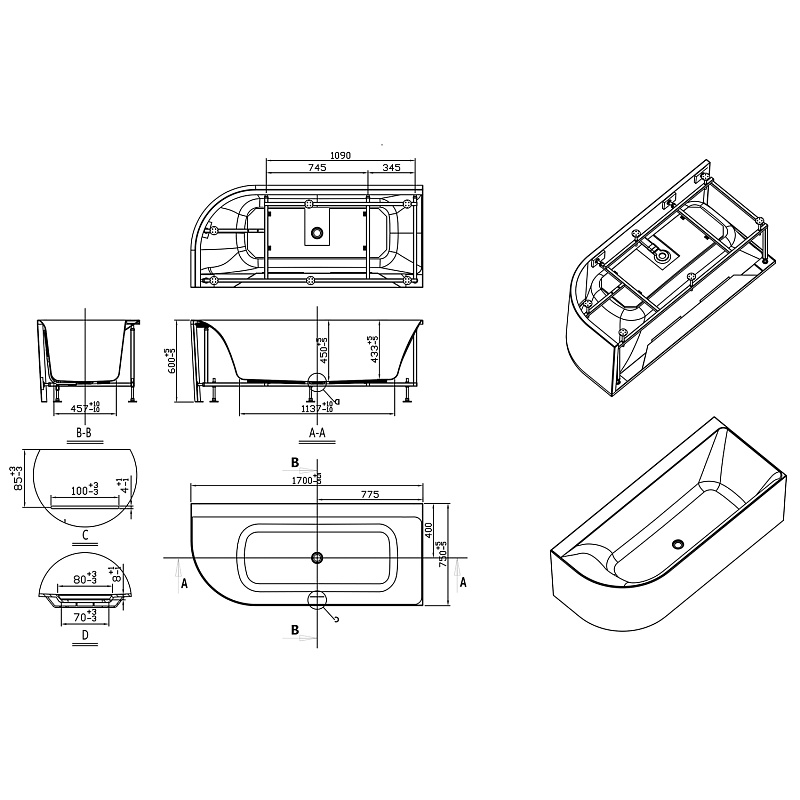Размеры (ДхШхВ): 1700x750x600 мм